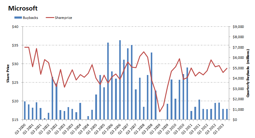 I checked out Microsoft's history timing share buybacks. Have a look: