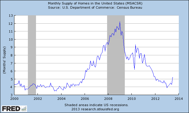 But things are changing. Supply is ramping up again, now running at 5.2 months' of sales: