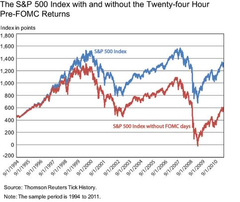 As surprising as the Fed's decision was, the market's reaction was par for the course. According to the Fed's own research, effectively all of the market's gain from 1994 to 2011 came within 24 hours of Fed policy meetings: