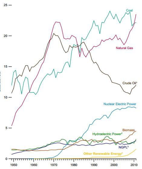 With the recent rise of natural gas and renewables, a decline in nuclear might not seem so bad. Natural gas has already surpassed coal as our largest source of electricity, and wind power alone is expected to triple capacity in the next three years. Crude oil is a relic of the past for electricity, and we've managed fine with recent coal closures.