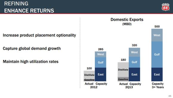 The following slide shows how quickly Phillips 66 is expanding both its export capacity and the volumes it is exporting. Further, note that distillates such as diesel currently make up most of the export volume.