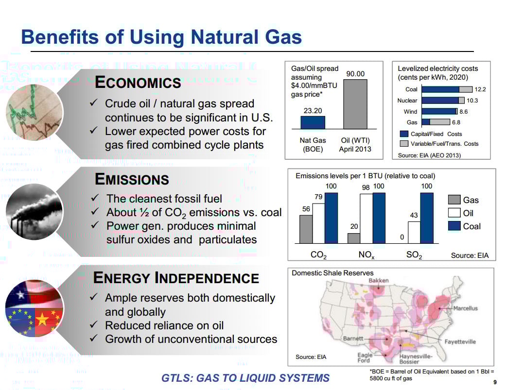 The following slide is pretty remarkable. In the upper right hand corner it details two charts that clearly demonstrate how cheap natural gas is relative to rival fuels.