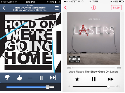 iTunes Radio's interface is essentially a clone of Pandora's. Source: My phone.