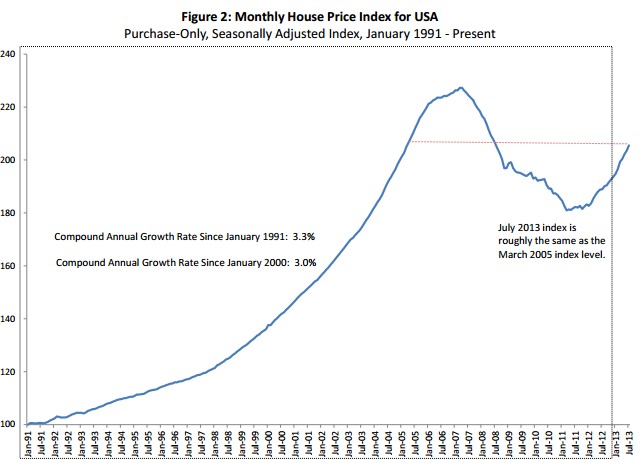 Source: FHFA.gov. The Y axis represents the Index Value (January 1991=100).