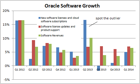 It would be a mistake to jump to a negative conclusion. First, Oracle is up against a very strong comparison from last year's second quarter for new license and cloud subscription sales.