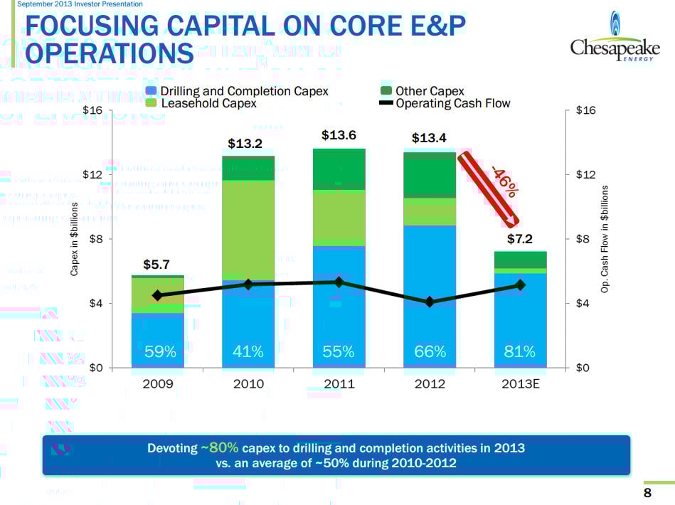 Again, with capital needs that high, paying a dividend should be the last thing the company is doing. While I can understand that the dividend might have been intended to appease investors, that didn't really work given the subsequent investor revolt that forced out McClendon.