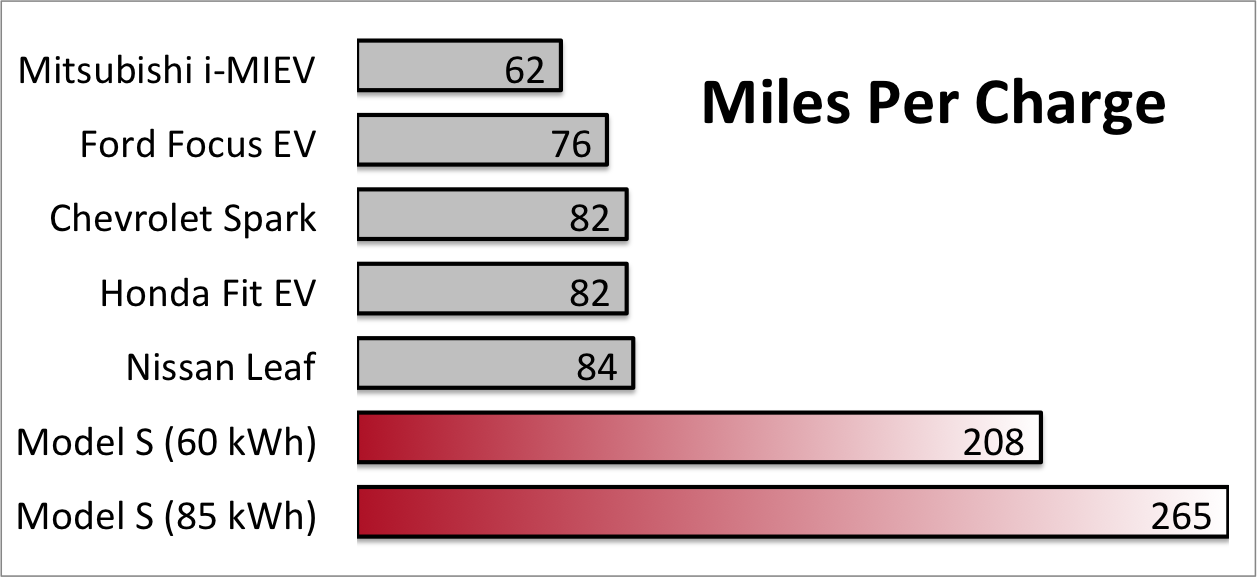 First of all, no competitor has launched a battery that can even come close to achieving the 265-mile range of Tesla's Model S.