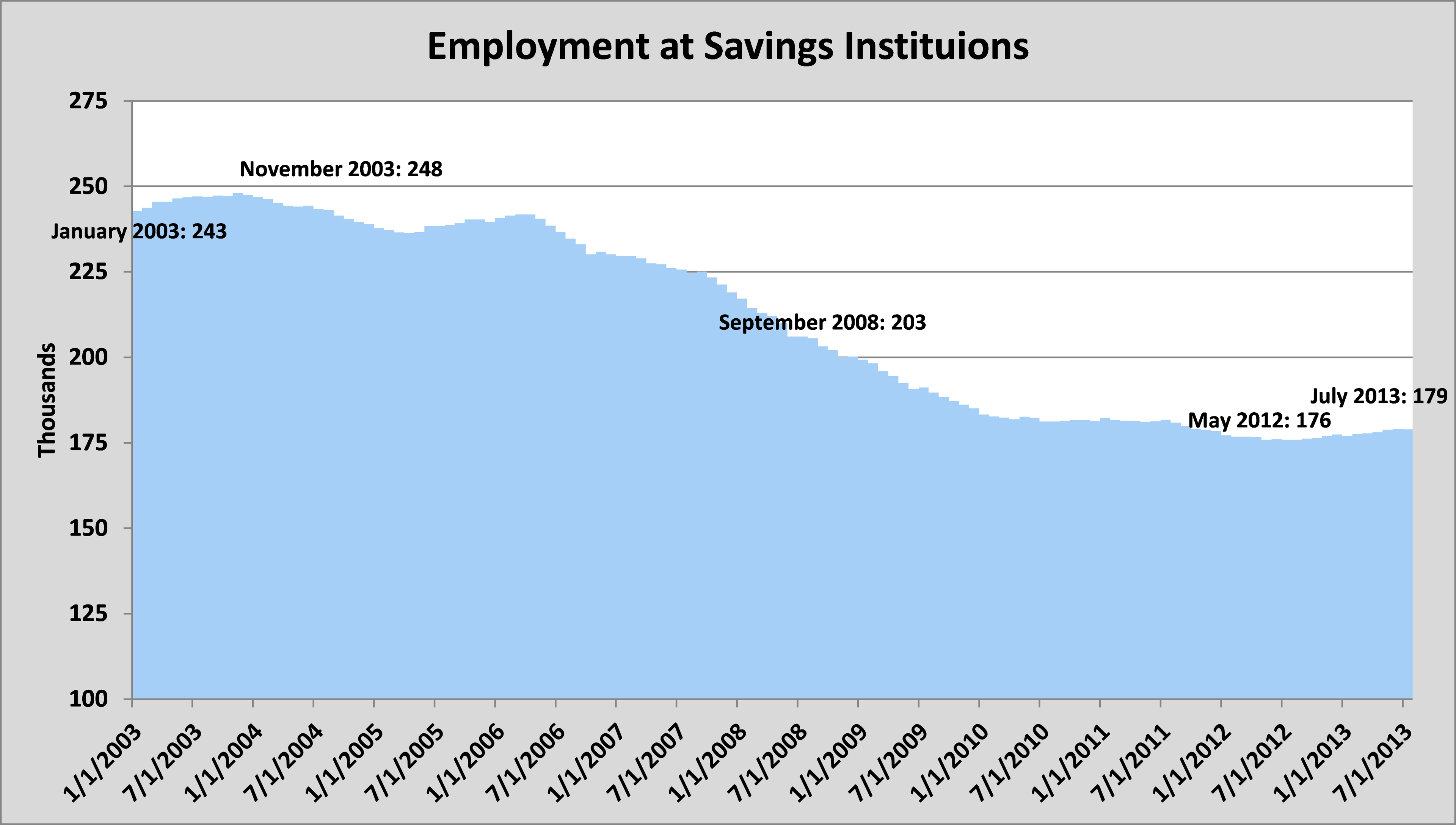 As a matter of fact, the hardest-hit group is savings institutions, where employment has fallen by more than 25% over the past 10 years: