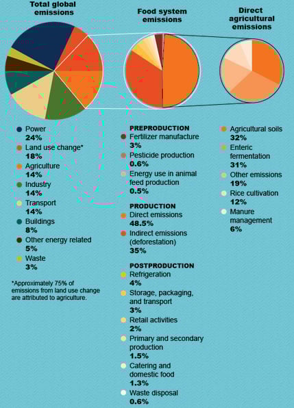 Instead of focusing on the rather large differences between these two estimates, I think it's far more productive to simply acknowledge that the global-food-production system plays an enormous role in climate change -- and that it's also an important player in reversing the negative effects of climate change.