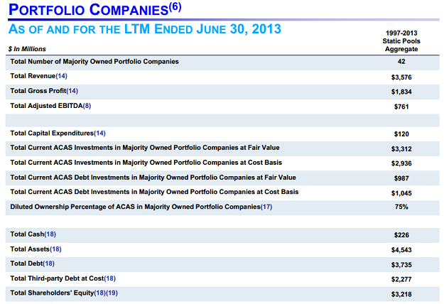 American Capital has made some improvements in disclosure. It now breaks out some consolidated financial data for its 42 majority-owned portfolio companies on slide 71 of its most recent quarterly financial supplement. These aren't its only equity investments, mind you, but majority owned portfolio companies make up the majority of equity investments at the firm.