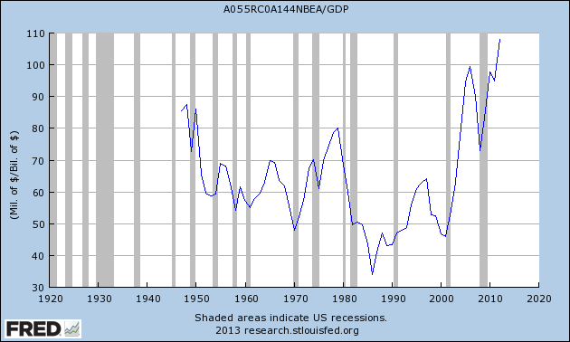 Two, corporate profits as a percentage of GDP have surged. Here's that:
