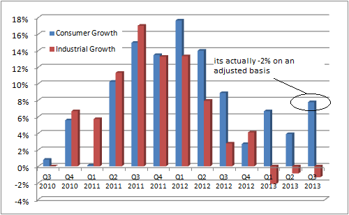 McCormick reported three weak points in the quarter. First, its industrial division saw weak demand from its quick service restaurant customers in the quarter. Essentially, the fast food companies are seeing lower demand, and they are also tailoring their products and promotions toward the kinds of items (breakfast, coffee, etc) that McCormick doesn't sell into. On a more positive note, McCormick argued that China was a bit better than expected.