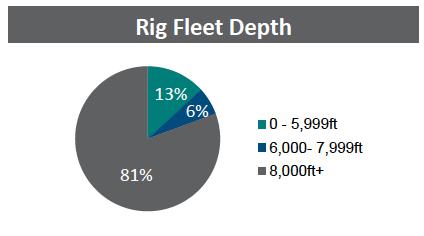 To capitalize on the growing demand for oil and gas services, the Trinidad Drilling management team has streamlined their assets to focus on the deep drilling market. Currently, 87% of Trinidad Drilling's rigs have the ability to drill wells deeper than 6,000 feet or more while 77% of the company's total rigs are considered "high performance." These high performance rigs have increased maneuverability, upgraded safety features and integrated control systems that provide the drillers with real-time graphic information designed to improve efficiency and increase safety.