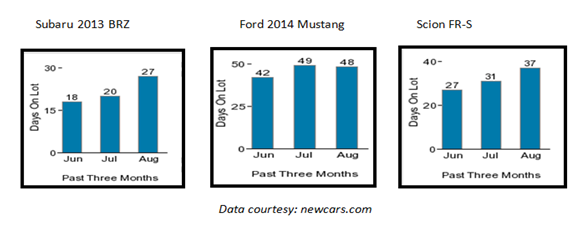 We can also gauge the demand for the three sports coupes from the number of days that each of them spends at dealer lots. This will eliminate the effect of any supply inconsistencies and provide a more accurate estimate of demand.