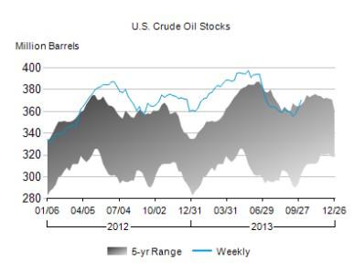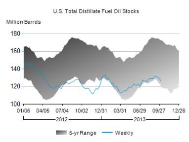 Distillates supplies, which include diesel and heating oil, fell 3.1 million barrels (2.5%) for the fourth straight week of inventory draws. Distillates demand for the last four weeks is down a slight seasonally adjusted 0.1% from the same period last year, and in the past year inventories have expanded 4.2%.