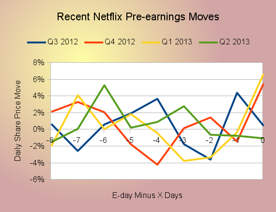 Netflix is an extremely volatile stock in the days before earnings releases. Here's how the stock has oscillated in the last few trading days before each of the four latest earnings updates: