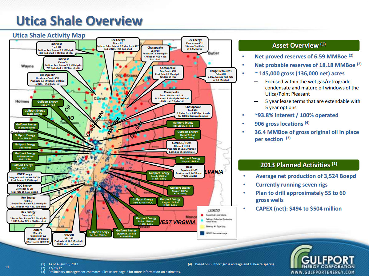Gulfport Energy is the one company that has found real success in the Utica. It is investing nearly $500 million of its $590 million capital budget on the play this year. The reason for this is that Gulfport has drilled some of the best wells in the play with three of its most recent wells all producing seven-day sales rates in excess of 1,000 barrels of oil equivalent per day.