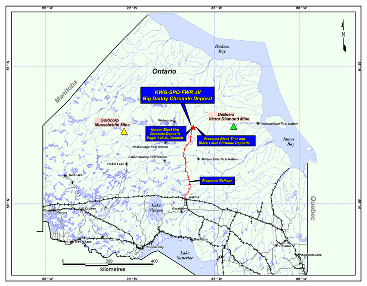 So with a conditional agreement with the Ontario government for financial assistance, Cliffs proposed the construction of an all-weather north-south ore-haul road. There was a slight problem with it, however: the best feasible route to reach the chromite project runs right across mining claims belonging to KWG Resources and other resource companies.