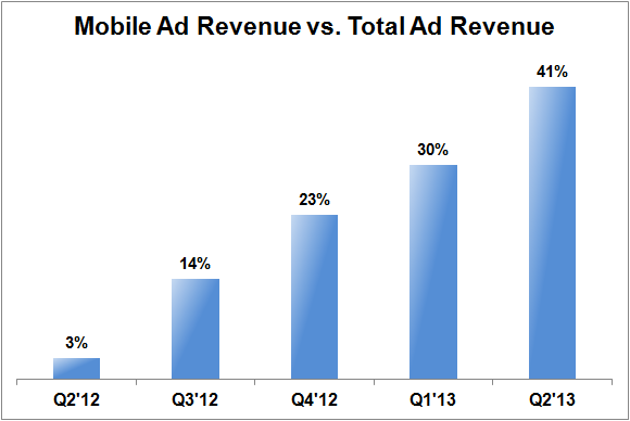 As I'm sure you've heard by now, Facebook turned the threat of mobile devices cannibalizing its desktop business into a massive opportunity in just five quarters. During this time, Facebook's mobile advertising revenue grew from 3% of total advertising revenue to 41%. Not only does this speak to management's ability to react swiftly to changes in user behavior, it demonstrates the often difficult-to-measure value of its incredible "can-do" culture.