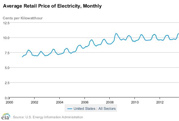 That isn't the only thing it's doing, though. With so many companies rushing to build natural gas generators, the electricity market is flooded to the point that the average cost of electricity hasn't budged in five years. While this may not be very attractive for utilities, it does make it less expensive for other industries in the United States.