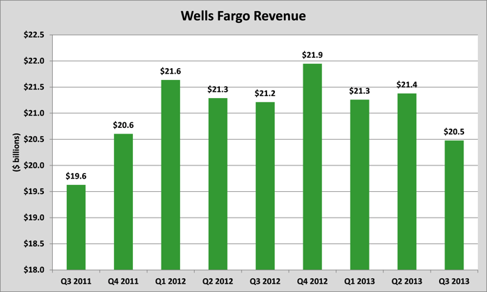 Wells Fargo's total revenue fell to its lowest level in two years.