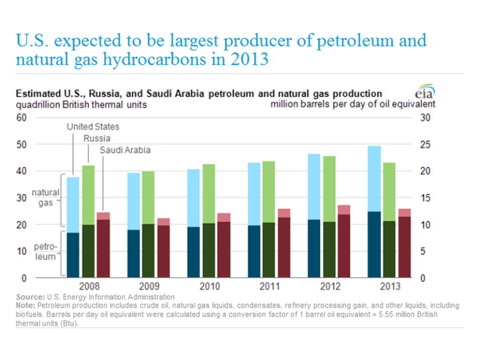 The US Energy Information Administration is charged with educating the public on all things energy-related. It tracks virtually every aspect of energy production and consumption internationally. According to the EIA, the US surpassed all other hydrocarbon producers in total output in 2012. In fact, it's been a close race between Russia and the US for the last half decade.