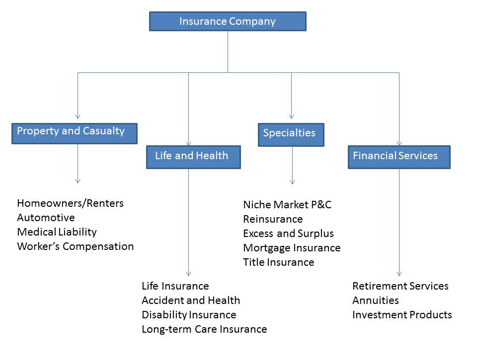 One of the final things to note about the insurance industry is the focus on several core divisions of insurance products. Companies that make up the market can mix and match those divisions depending on their business strategy. Below is a simplified breakdown of some of the key divisions of the insurance business.