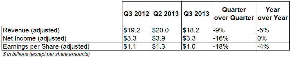 Citigroup's bottom-line earnings of $3.2 billion looked mighty impressive when compared with the $468 million it reported in the third quarter of 2012, but that has less to do with the 2013 performance than the host of one-time items that characterized its quarter in 2012.