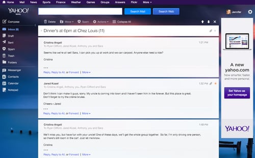The new Yahoo! Mail interface. Source: Yahoo!.