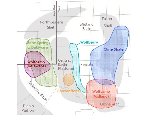 Second, the Cline is surrounded by several oil-rich formations. In other shale plays, operators can target only one or two hydrocarbon producing fields. In the Eagle Ford for example, the hydrocarbon-producing layer is about 150 to 300 feet thick.