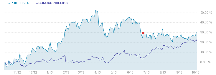 Since the spin-off, Phillips' stock has outperformed that of its parent company.