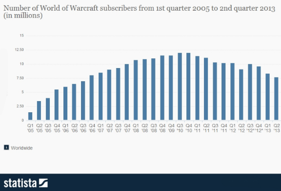 Although World of Warcraft saw its number of subscribers decrease from 12 million to 7.7 million, Skylanders and Call of Duty have plenty of room for growth. With retail sales of more than $1.5 billion, Skylanders Giants got the first ranking in North America and Europe in the first half of 2013, while Call of Duty: Black Ops II got the second place. Not surprisingly, Call of Duty digital sales record grew by more than 100% in the latest quarter.