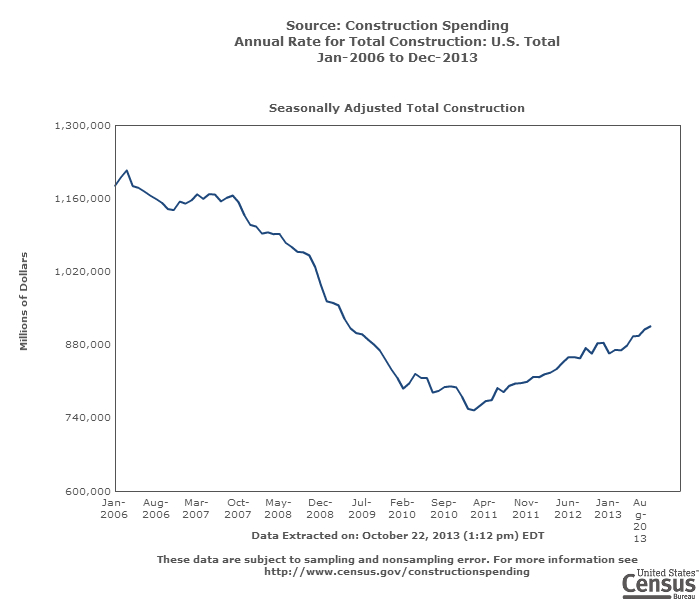 So far for 2013, overall construction spending is up 5.9% compared to the same period in 2012.