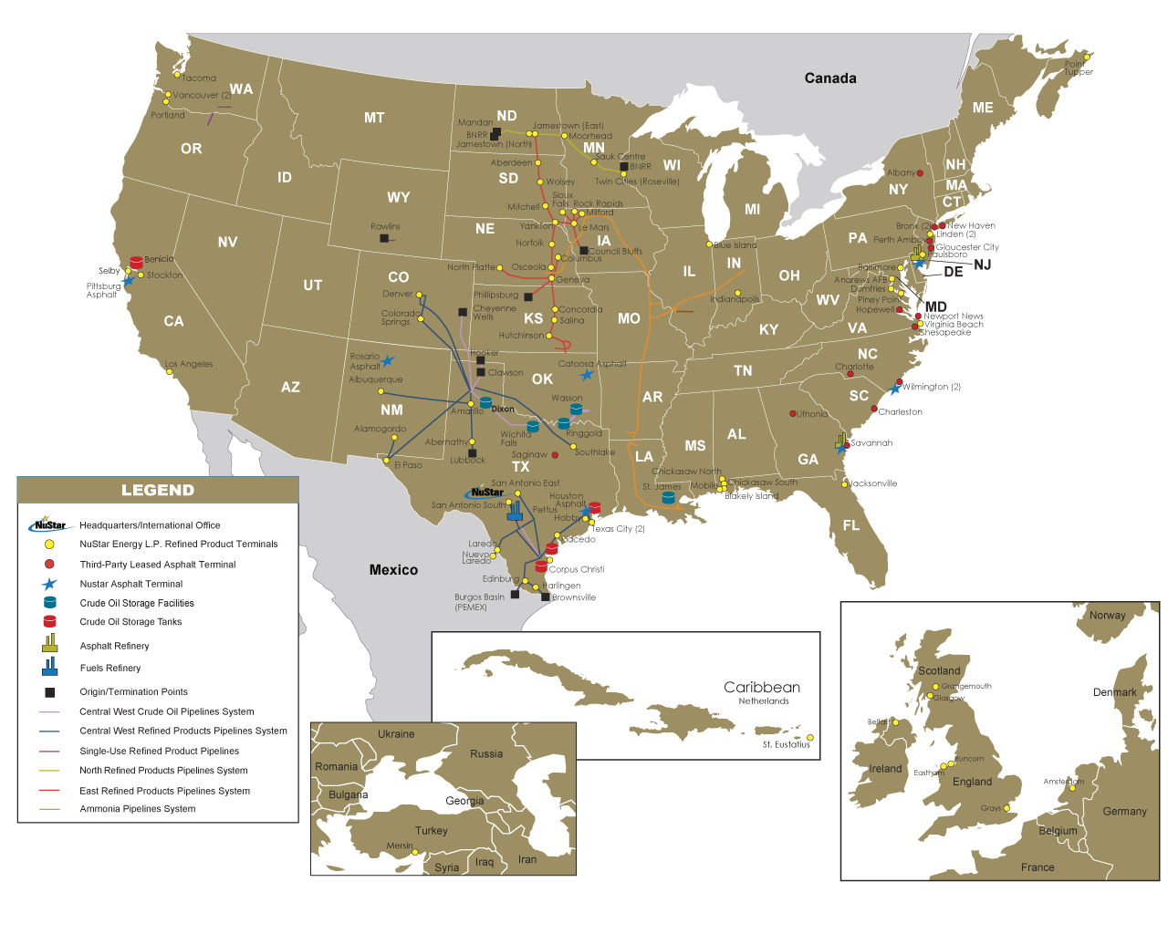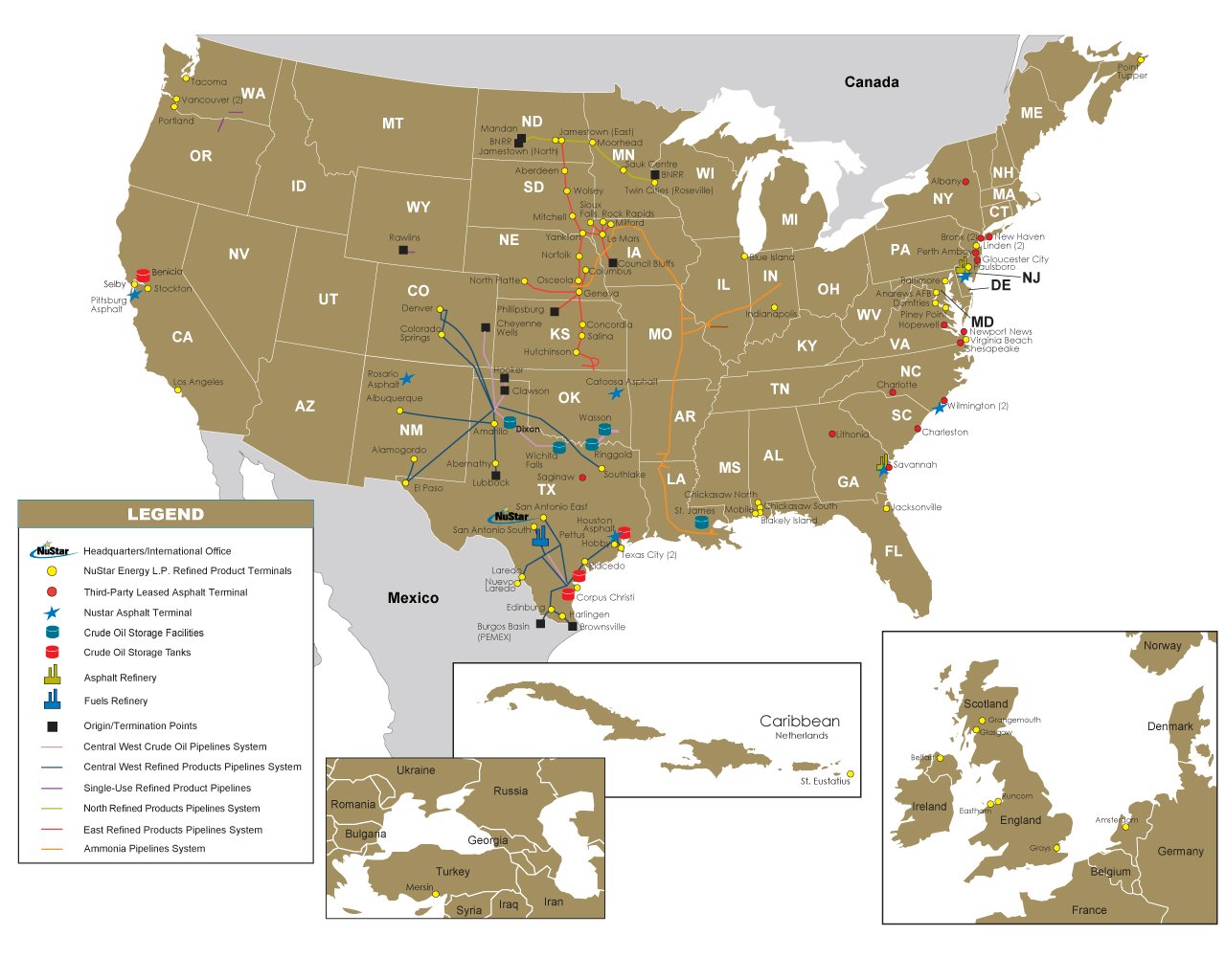 My first MLP is one of the largest independent liquids terminal and pipeline operators in the U.S. It also owns and operates midstream assets in Canada, Mexico, the Caribbean, the Netherlands, the U.K., and Turkey. NuStar Energy (NS +0.00%) has 8,573 miles of pipeline and 87 terminal storage facilities, with approximately 97 Mmbbls of capacity.