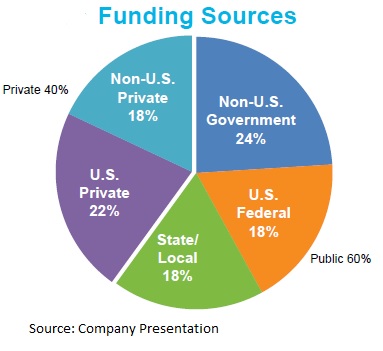 AECOM is the largest engineering design and architecture firm in the world, serving a range of end markets. The company's clients include U.S. and non-U.S. governments, as well as private players.