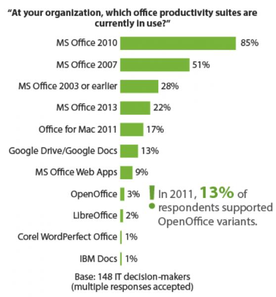 Microsoft's new Office 365 is unlike previous versions of the software because it is offered as a subscription service and integrates with the cloud. This new version is also now at a $1.5 billion annual revenue run rate and growing. Other versions of Office also still have a huge moat, with the closest, distant competitor being Google Docs.
