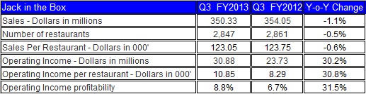 The table below has the data for Jack in the Box: