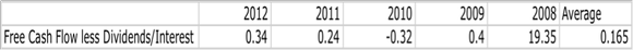 Probably the best way to determine this is to take the company's free cash flow, less dividends paid to shareholders, divided by interest expense. The results are shown in the table below.