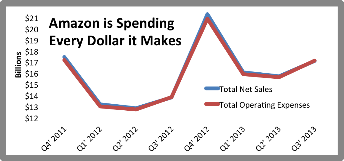 Amazon knows its business is all about scale. One day, way down the road, Amazon can tone down spending and deliver profits for shareholders. But for now (and probably for years to come), revenue will continue to be the focus.
