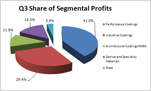 PPG's performance coatings segment probably represents its greatest growth catalyst going into 2014. Unfortunately, the commercial construction market hasn't kicked in quite as strong as many had hoped so far this year. Indeed, on the conference call PPG described itself as being "more bullish on commercial construction coming into the year" than its actuall first-half performance could support.