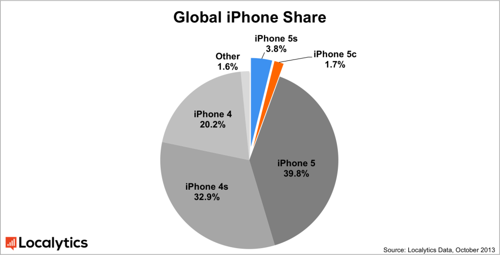 It's important to give some perspective to the current activation numbers by comparing them to last year's iPhone 5 data. According to Localytics back in December 2012, the iPhone 5 accounted for 12% of iPhone devices.