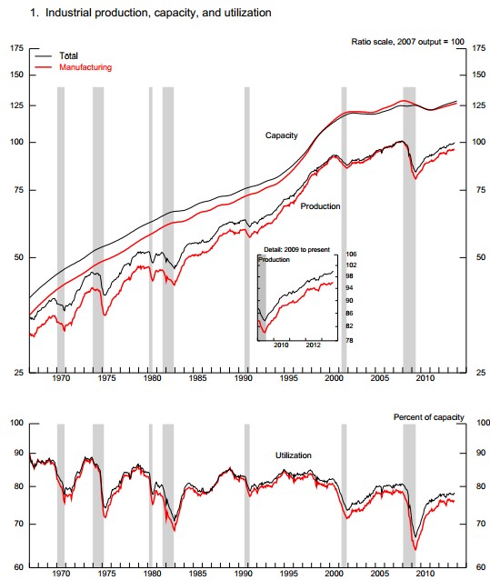 Overall capacity utilization crept up 0.4 percentage points to 78.3% due primarily to a 3.4-point spike for utilities. Mining fell 0.1 points to 90%, while manufacturing stayed steady at 76.1%.
