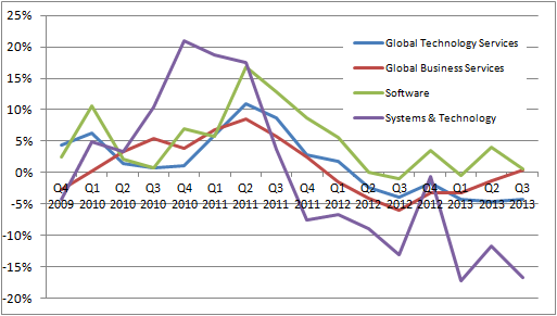 In fact, the only segment that really performed well was its global business services segment, or GBS, which delivered constant currency sales growth of 5%. This was in-line with IBM's forecast of mid single-digit growth.