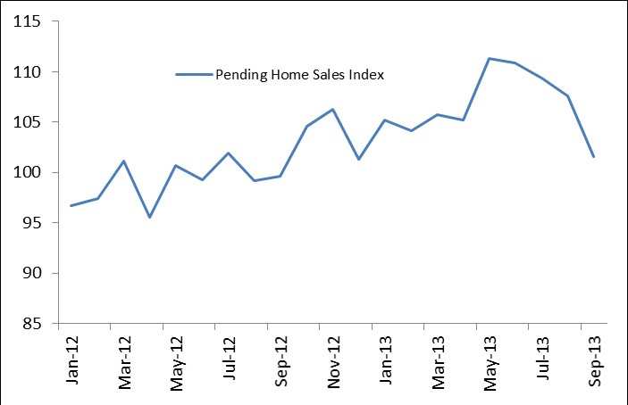 After dropping 1.6% for August, September's index had been expected to stay at the same level. Current pending home sales are at their lowest point since December 2012, and are down 1.2% in the past 12 months.
