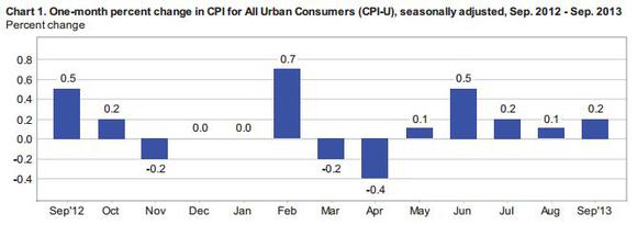 The Consumer Price Index (CPI) increased a seasonally adjusted 0.2% for September, according to a Labor Department report (link opens as PDF) released today.