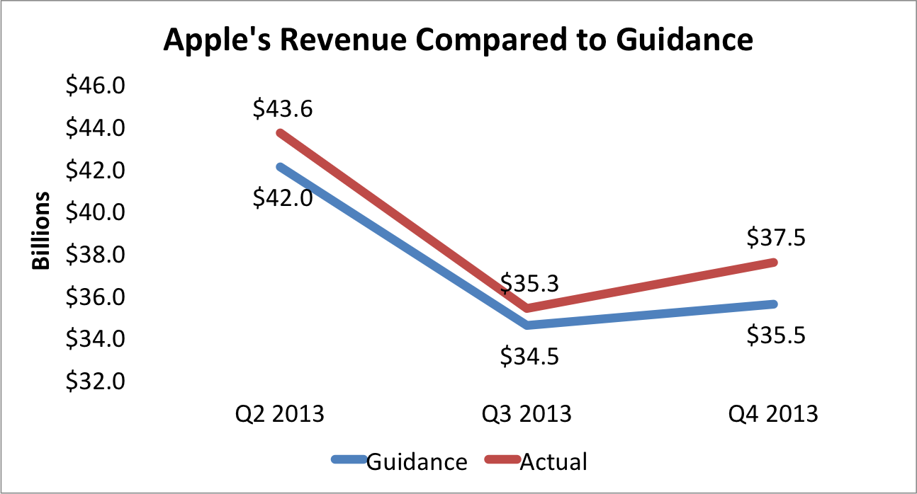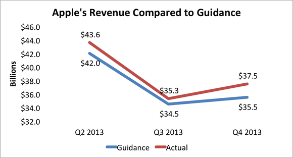 This isn't by chance. The move to more realistic guidance was on purpose. Apple CFO Peter Oppenheimer laid out the move to more realistic guidance very clearly in the company's first-quarter 2013 earnings call: