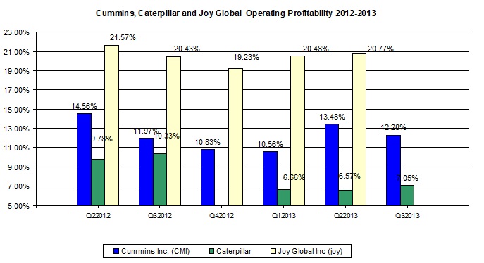 As indicated in the chart below, Joy Global maintained profit margins higher than its competitors'.
