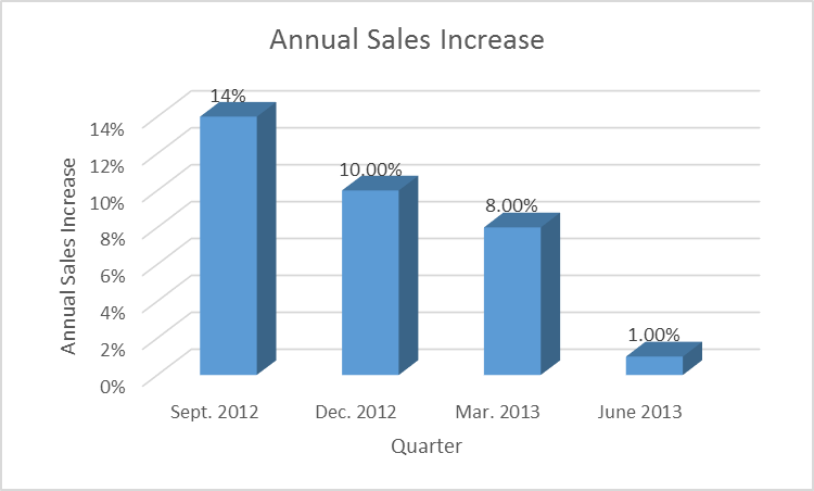 There might not be a clearer picture of Costco's problem than the company's slowing top-line growth. Even amateur investors look at sales growth figures to decide whether to buy a stock. Looking at Costco's performance over the last four quarters, this doesn't look like a blue chip performance .