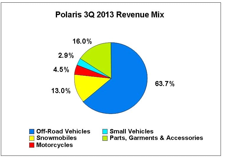 Here's how Polaris' revenue mix broke out in the quarter. Keep in mind there is seasonality involved with snowmobile and motorcycle sales.