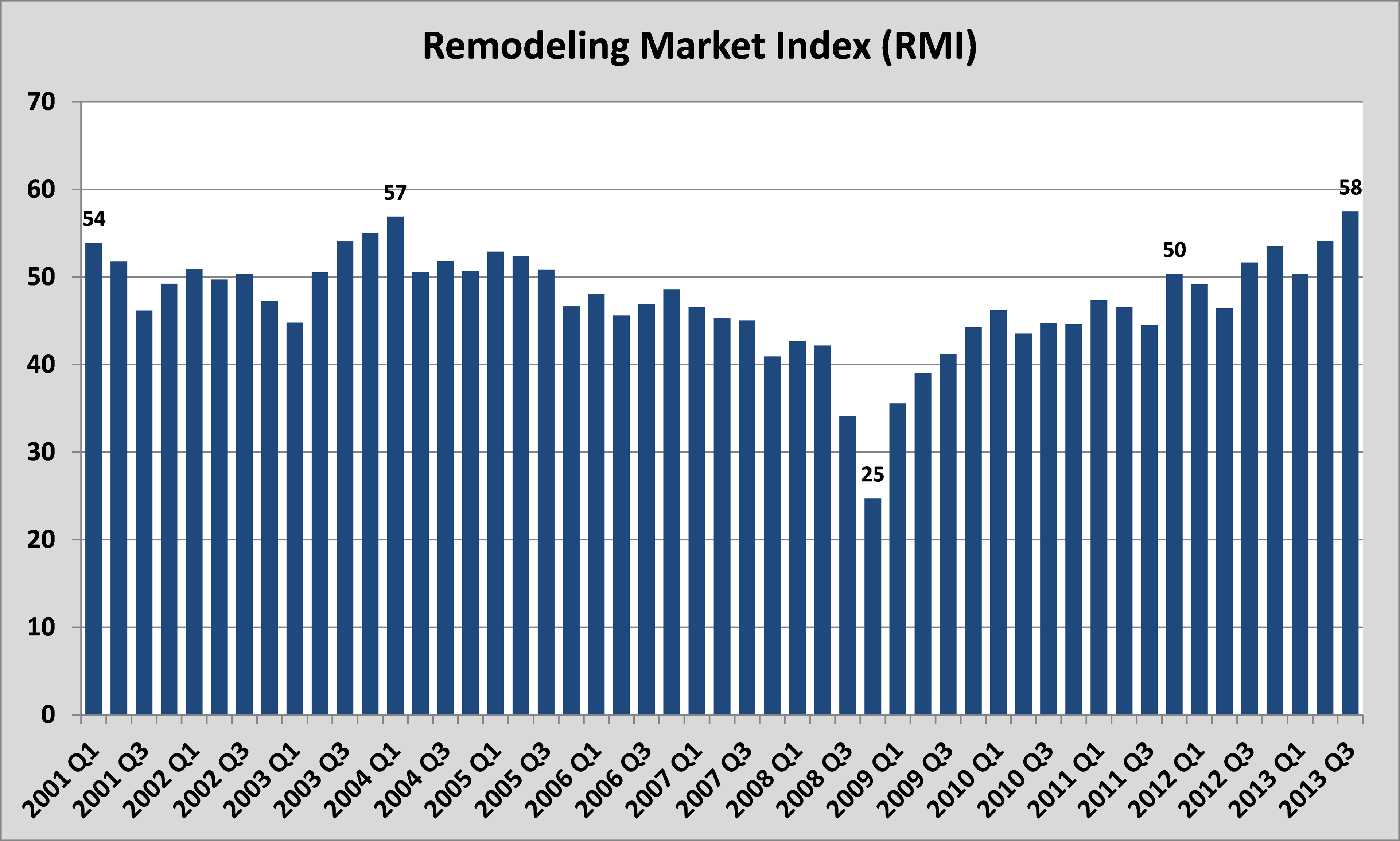 Every quarter the National Association of Homebuilders (NAHB) announces its Remodeling Market Index (RMI) which measures the current state of the remodeling market based on the activity that remodelers report.